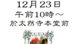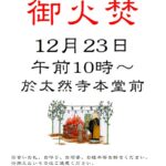 今年も、12月23日10時より行います。※古いお札、お守り、お塔婆、お経本等お持ちください。※燃えな… 続きを読む: 御火焚