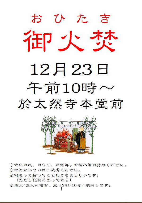 ※古いお札、お守り、お塔婆、お経本等お持ちください。