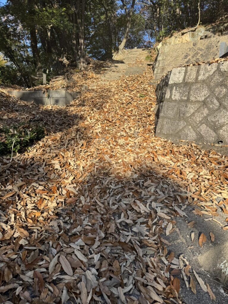 24日にシルバーさん3人が来て掃除をする予定ですが、その日だけでは到底できそうにないので、とりあえず今積もっている落ち葉を処理しました。ブロアーで集めるのですが、集めている最中にも落ち葉が降ってきます。