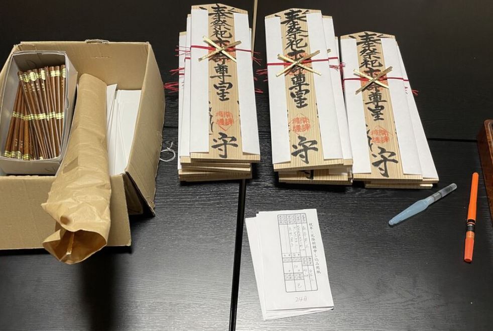 祝年・厄除けのお札 法務・行事・仏事 2026.01.13 祝年・厄除けのお札を作っています。自坊の場合、節分会とかは行っていませんので、個別にご祈祷に行ったり、お寺で拝んでお正月経の時に持参したり、取りに来られたり等、家によってまちまちです。節分までにお申し込みください。