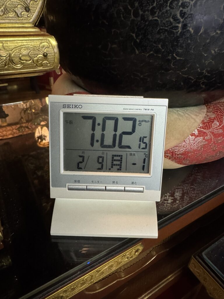 7時の朝勤時の堂内の気温が-1℃でした。