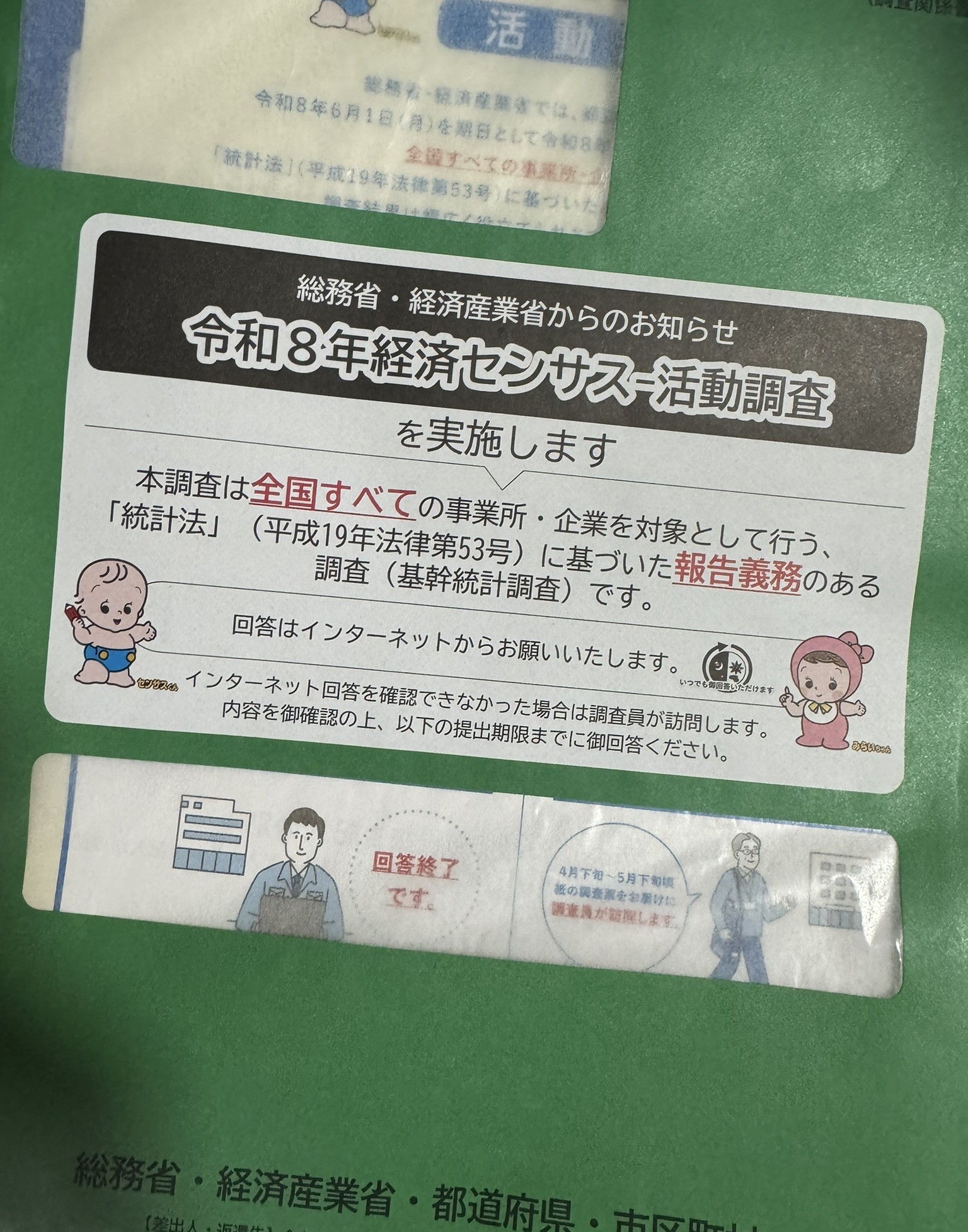 経経済センサス活動調査という書類が届きました。