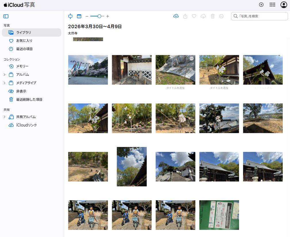 その時、iCloudというクラウドサービスを使っています。撮影した写真が自動的にパソコンにも同期されるので、とても便利です。
